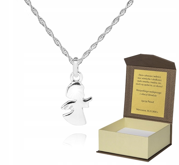 925 Srebrny łańcuszek 40cm ANIOŁEK DEDYKACJA S1Z49