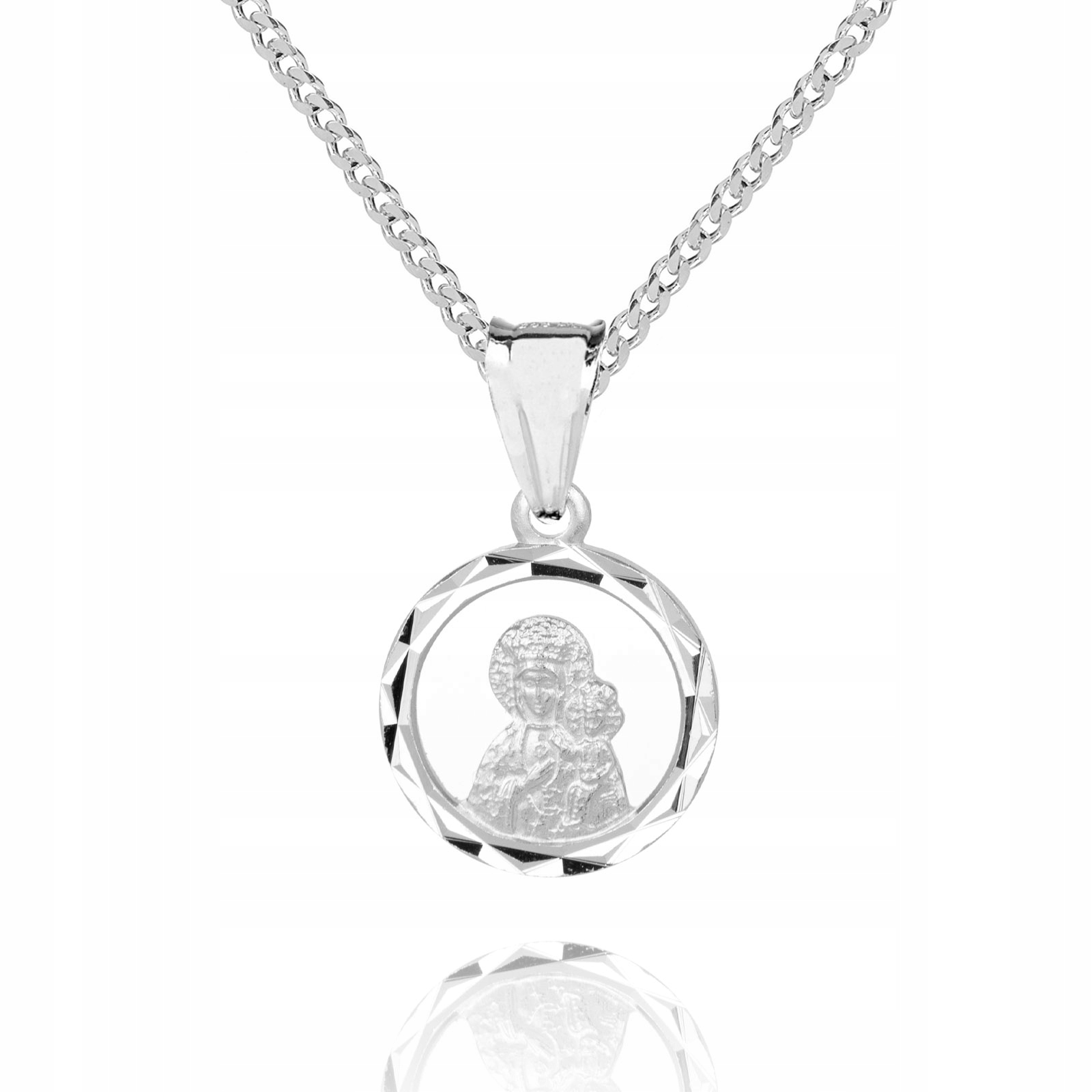 Przedmiotem sprzedaży jest  925 srebrny łańcuszek, splot pancerka, 45 cm + medalik, Matka Boska Częstochowska, P3M40.