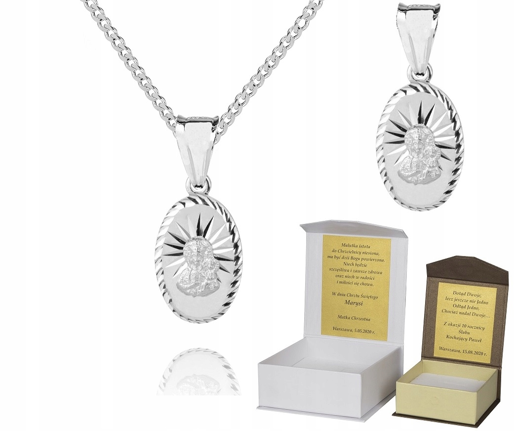 Przedmiotem sprzedaży jest 925 srebrny łańcuszek, splot pancerka, 45 cm + medalik, Matka Boska Częstochowska, P3M46.