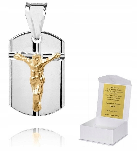 Przedmiotem sprzedaży jest  srebrny, pozłacany medalik katolicki, M36Wyrób wykonany jest w całości z najlepszej jakości srebra próby 925.Produkt jest nowy, zapakowany w gustowne pudełeczko. Jest to wyrób jubilerski, precyzyjnie wykonany, z dbałością o detale. Zgodnie z prawem, nasza biżuteria powyżej 5 gram jest przebadana i cechowana w Państwowym Urzędzie Probierczym. Wybierając naszą ofertę masz całkowitą pewność, że kupujesz oryginalny wyrób jubilerski, wykonany w całości ze srebra.Parametry produktu:1. Srebro pełne, próba 9252. Waga całkowita produktu: 1,88 g3. Długość medalika wraz z zawieszką: 25 mm4. Szerokość medalika: 12 mm