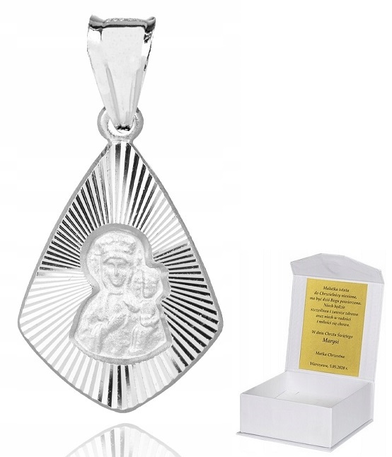 Przedmiotem sprzedaży jest  srebrny medalik katolicki, Matka Boska Częstochowska, M48