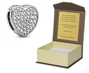 Jeśli chcesz, wykonamy dowolną dedykację i umieścimy ją w pudełeczku wraz z biżuterią.