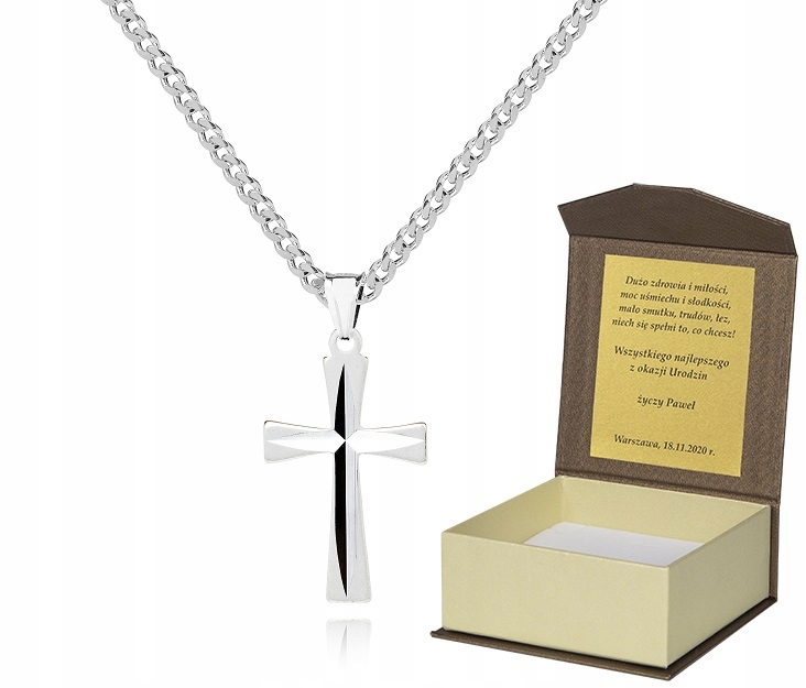 Srebrny łańcuszek Krzyżyk Komunia Chrzest DEDYKACJA 50cm P3K13