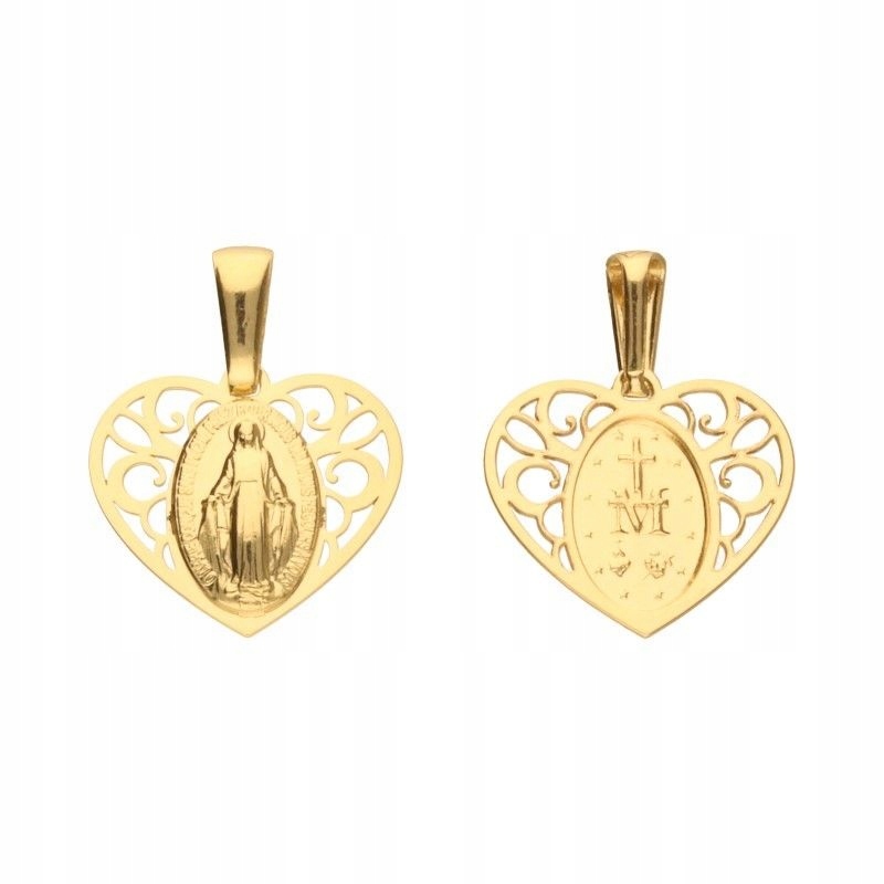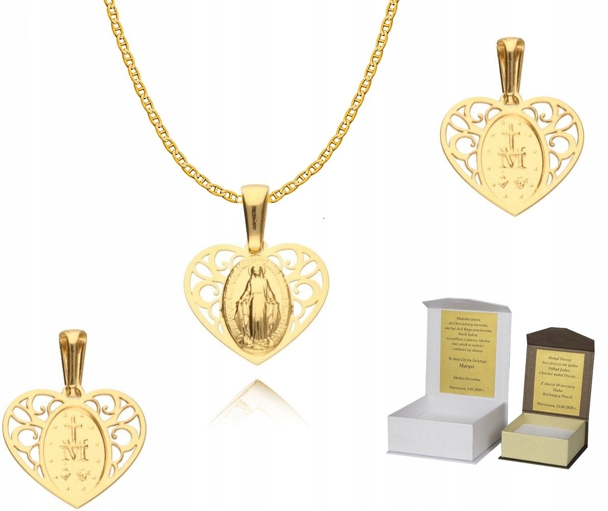Przedmiotem sprzedaży jest złoty łańcuszek ( splot Gucci ) wraz z widocznym na zdjęciu medalikiem – Cudowny Medalik w ażurowym sercu.