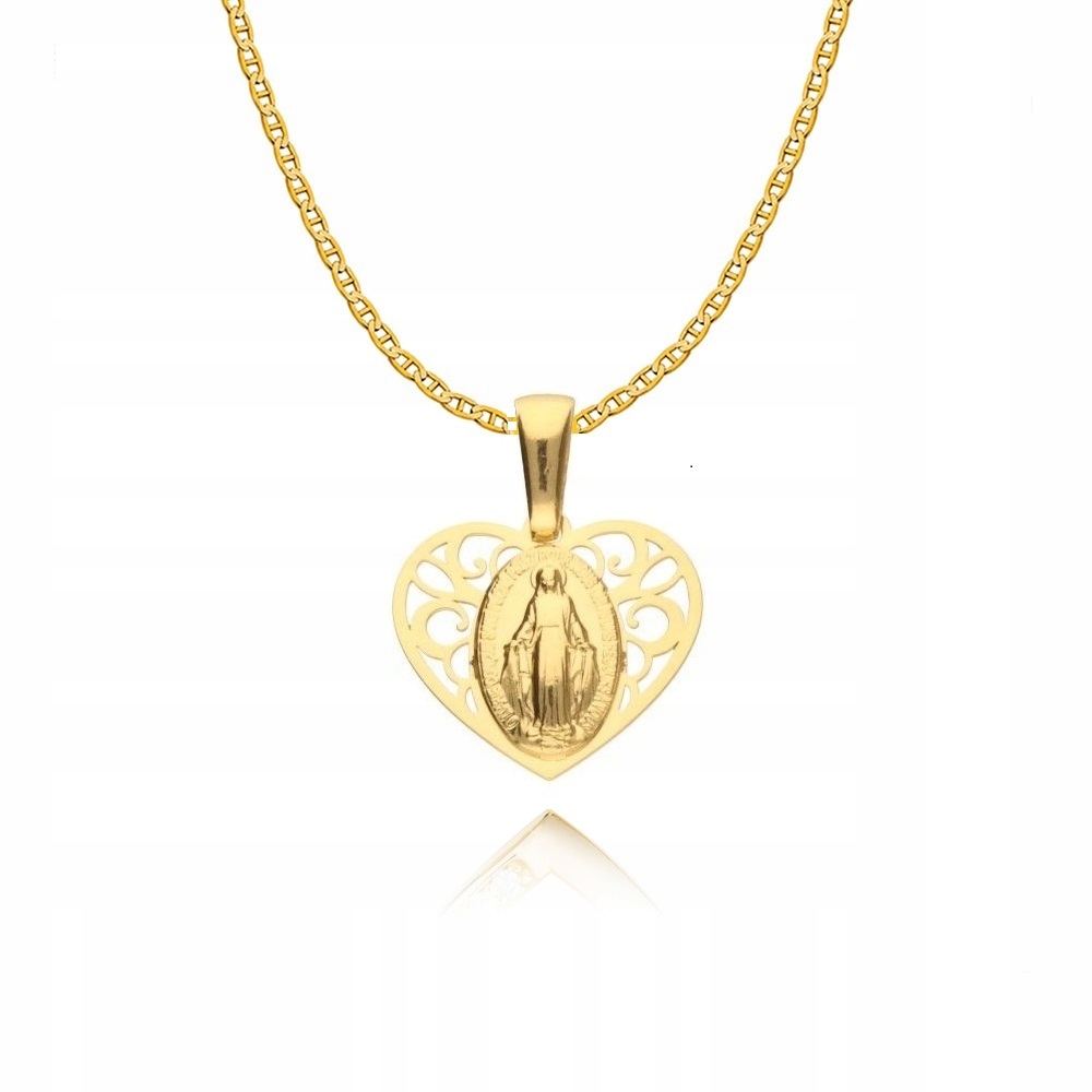 Złoty łańcuszek pr. 585 Cudowny Medalik Matka Boska 45 cm dedykacja Chrzest Komunia GZ1MZ1
