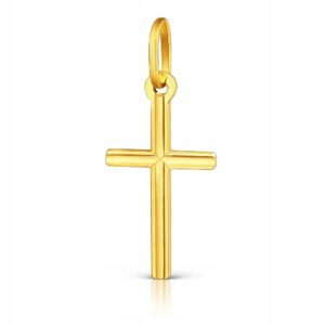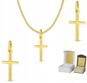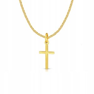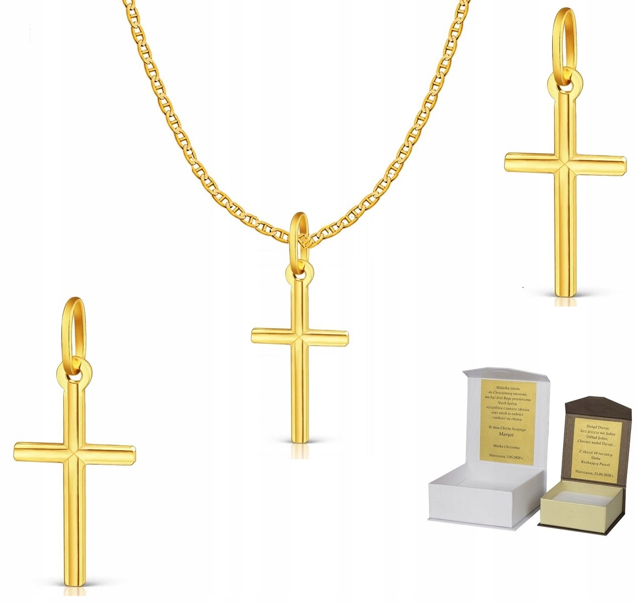 Złoty łańcuszek pr. 585 KRZYŻYK KRZYŻ 45 cm DEDYKACJA Chrzest Komunia GZ1KZ1