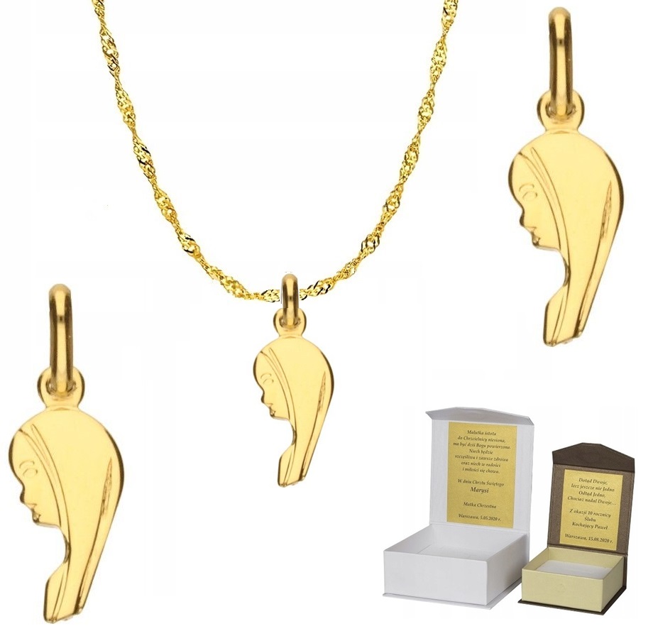 Złoty łańcuszek pr. 585 medalik Matka Boska Fatimska 50 cm DEDYKACJA Chrzest Komunia SZ1MZ6