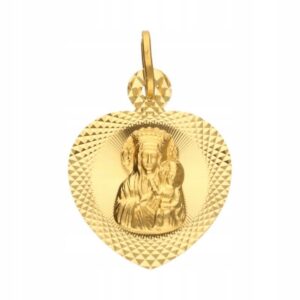 Przedmiotem sprzedaży jest złoty łańcuszek ( splot SINGAPUR ) wraz z widocznym na zdjęciu medalikiem – Matka Boska Częstochowska w diamentowanym sercu.