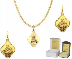 Przedmiotem sprzedaży jest złoty łańcuszek ( splot Gucci ) wraz z widocznym na zdjęciu medalikiem – SZKAPLERZEM.Wybierając naszą ofertę masz całkowitą pewność, że kupujesz oryginalny wyrób jubilerski, wykonany z najwyższej jakości złota próby 585.Parametry produktu:1. Złoto, próba: 5852. Waga całkowita produktu: 2,18 g +/- 0,15 g3. Długość łańcuszka: 50 cm4. Szerokość łańcuszka: 1,2 mm3. Wymiary medalika bez krawatki: 12 mm x 10 mm