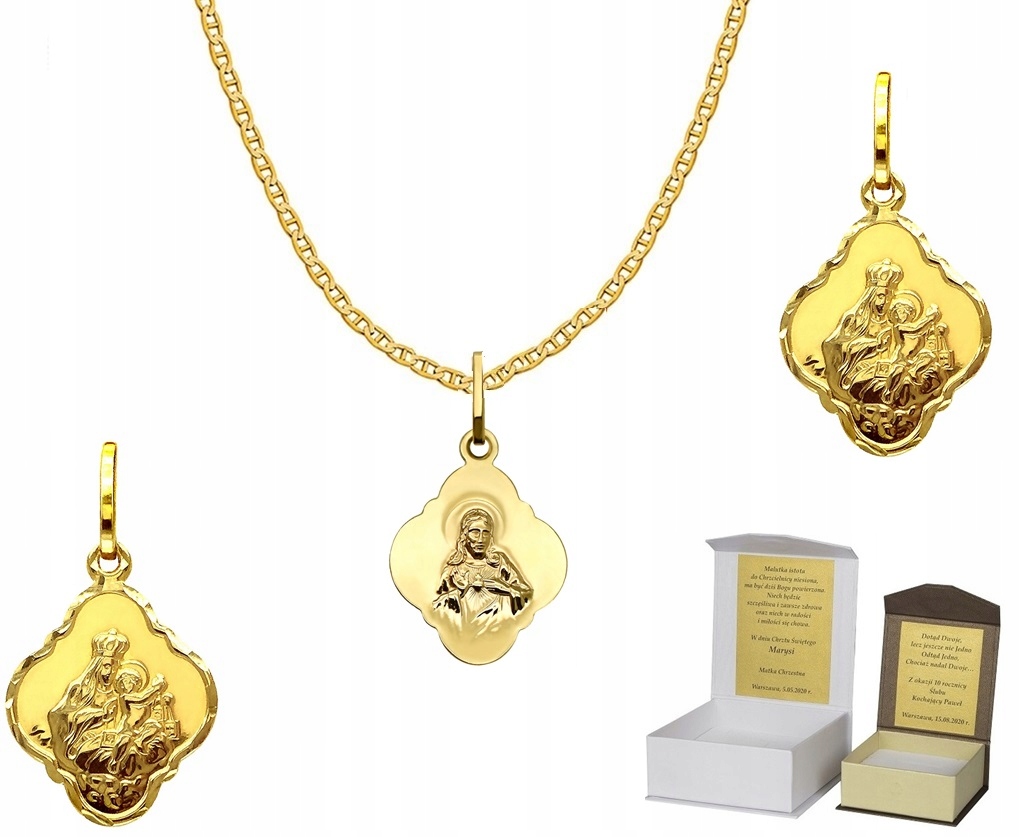 Złoty łańcuszek pr. 585 medalik SZKAPLERZ 50 cm DEDYKACJA Chrzest MedalikGZ1MZ4